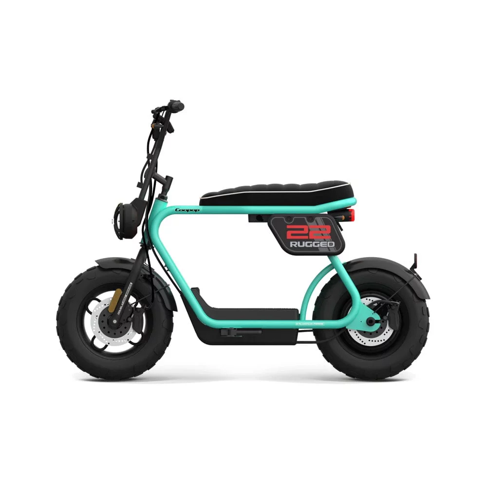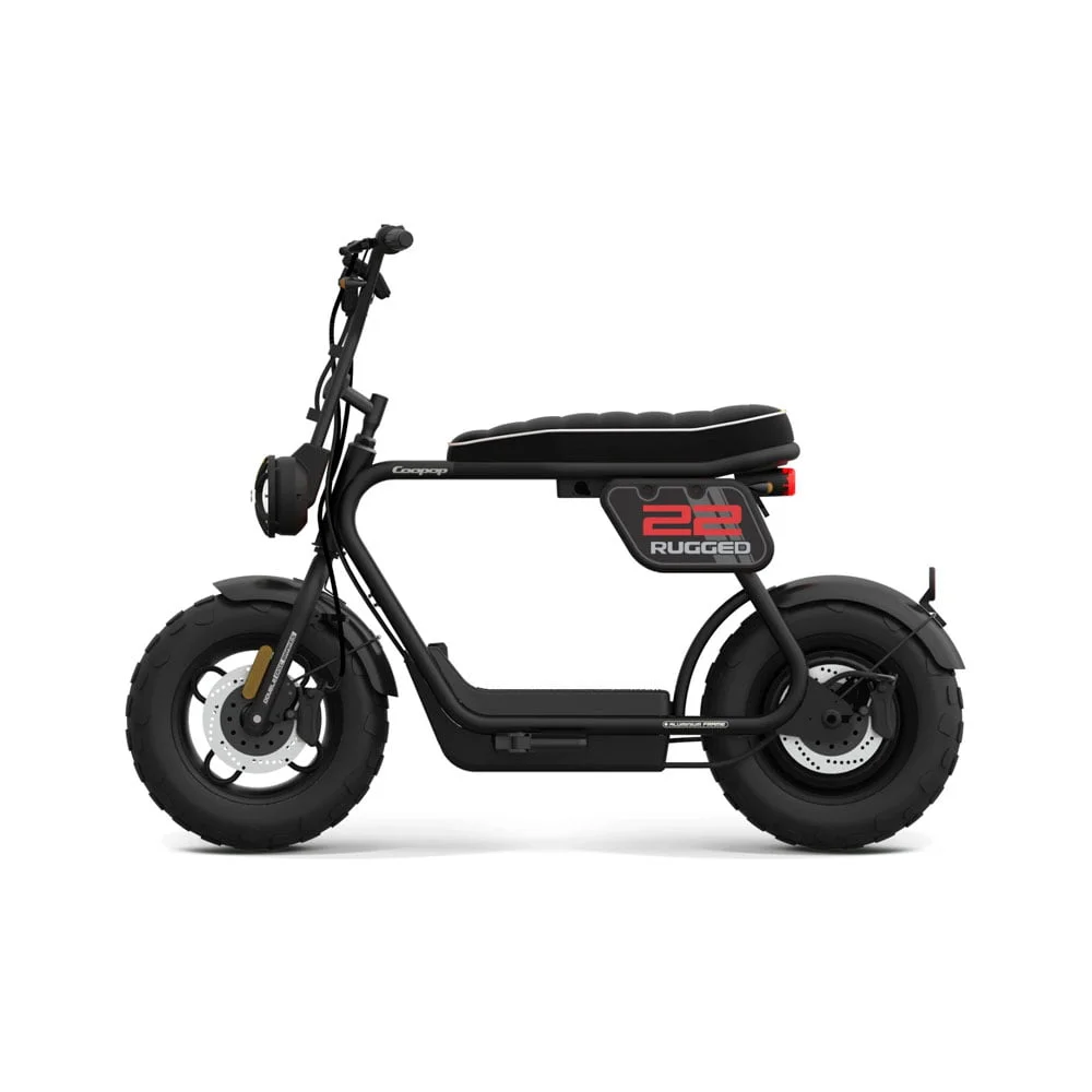Seikkailuja rakastava Rugged, varustettuna karkeakuvioisilla renkailla, viihtyy niin kaupungin kaduilla kuin epätasaisemmissakin maastoissa. Tyylikkäissä Coopop-sähköskoottereissa on laadukas LG:n tai Samsungin litiumakku. Moottorina toimii huoltovapaa hiiliharjaton napamoottori.